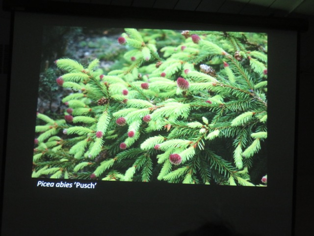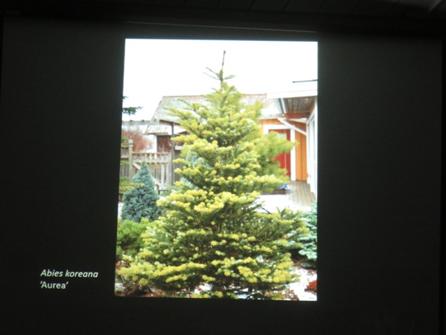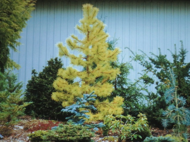 Koreansk gran med gula utskott. Foto © Margareta Dahlin. |